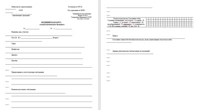 Заполняется на каждого пациента при первичном обращении в стоматологическое учреждение.