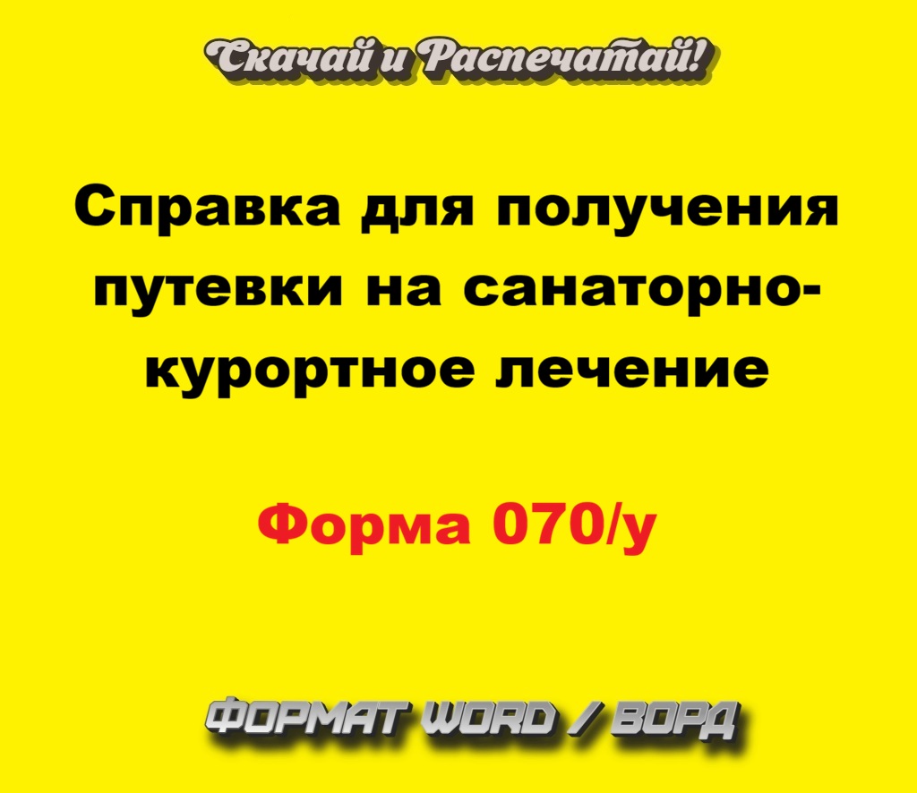 | Справка для получения путевки на санаторно-курортное лечение. Медицинская документация. Учетная форма № 070/у - скачать бланк Word / Ворд 2026 и распечатать А4