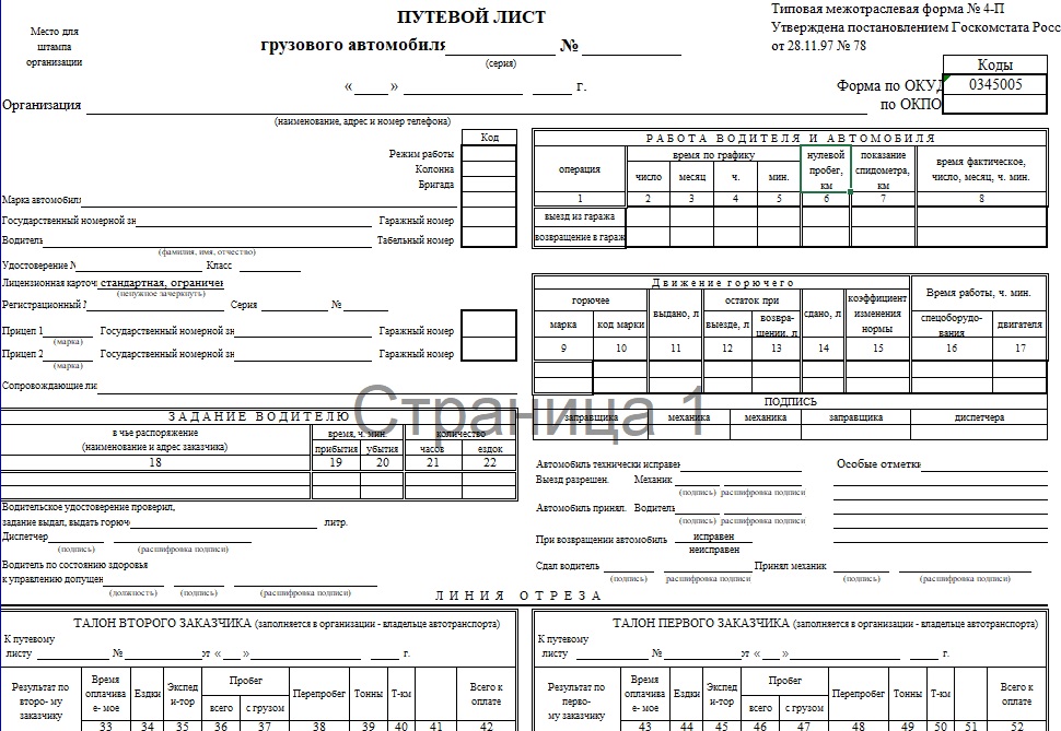 👉 Путевой лист грузового автомобиля форма № 4-П (Excel)