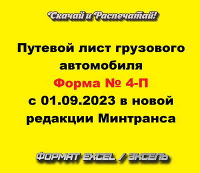 | Путевой лист грузового автомобиля (форма № 4-П) (с 01.09.2023 в новой редакции Минтранса) типовая межотраслевая форма скачать бесплатно бланк в формате Excel / Эксель 2026 и распечатать А4