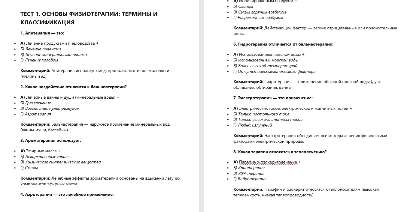 | Тесты по физиотерапии с ответами для Медсестер для Аккредитации 2026 - скачать бесплатно в формате Word / Ворд 2026 и распечатать А4