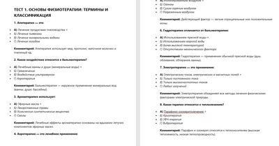Готовый сборник экзаменационных тестов для медсестер физиотерапевтических отделений.