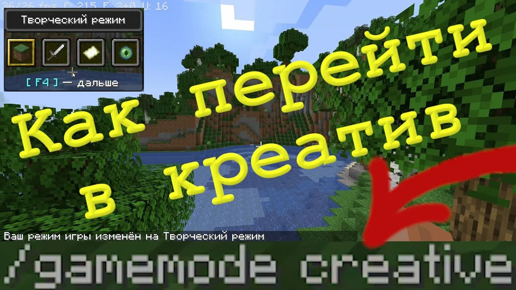 Способ 2: Быстрое переключение (только для Java Edition) В современных версиях Minecraft (Java Edition) есть секретная комбинация клавиш: 1. Нажмите и удерживайте клавишу F3. 2. Не отпуская F3, один раз нажмите F4. 3. Появится меню выбора режимов. Нажимайте F4, пока не выберете иконку творческого режима (звездочка), затем отпустите все клавиши.