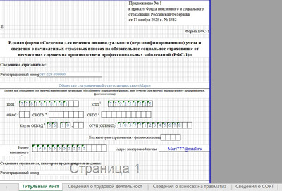 | Бланк отчет формы ЕФС-1. Скачать новый бланк в формате Excel / Эксель 2026 и распечатать А4 пример заполнения документа