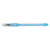 Прозрачный корпус, игольчатый наконечник, цветной резиновый держатель, колпачок с клипом, цвет чернил-синий.