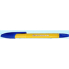 Шариковая ручка: на масляной основе, жёлтый корпус, синий колпачок.
