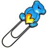 Закладка выполнена в виде большой скрепки и украшена фигуркой медведя, держащего в лапах сердечко.