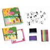 В наборе: 16 резиновых печатей, книга с 12 дизайнерскими страницами, 8 фломастеров, 2 подушечки для печатей.