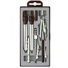 В наборе: универсальный циркуль, измерительный циркуль, малый кронциркуль с поворотным чертежным узлом, удлинитель, циркуль для малых радиусов "балерина", рейсфедер, держатель рейсфедера, упаковка стержней и запасная иголка, окружности диаметром до 540 мм.