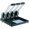 Дырокол мощный на четыре отверстия до 150 листов, черный, с линейкой