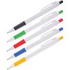 Автоматическая шариковая ручка. Непрозрачный тонкий пластиковый корпус белого цвета. Отдельные детали тонированы в цвет чернил. Специальная резиновая накладка грип-зоны препятствует выскальзыванию ручки из пальцев.