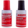 Набор: корректор на спиртовой основе и растворитель. Флакон с кисточкой для точного нанесения. Для корректировки любых видов текста. Ровно наносится, быстро сохнет. Не замерзает при температуре до - 20 °С.