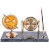 Подставка под ручку с глобусом и часами, зеленый мрамор