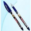 Пластиковый корпус с рисунком, резиновый держатель, цветной колпачок с прозрачной вставкой, цвет чернил-синий.