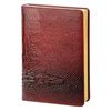 Обложка - твердая с поролоном, материал из искусственной кожи с фактурой головы крокодила, бордового цвета. Отделочная строчка по периметру. Возможно тиснение. Блок: недатированный, печать в 2 цвета, цвет бумаги - 100% белизны, 70 г/м2, прямые уголки, золотой обрез, 1 широкое шелковое ляссе. Внутренний блок - линейка. Информационный блок содержит: личные данные, карта мира, Российские праздники и памятные даты, аббревиатуры для переписки, разница во времени между Москвой и городами России, разница во времени между Москвой и странами мира, карта России, соответствие размеров, международные единицы мер, пищевая ценность продуктов, расход калорий при физических нагрузках, время распада алкоголя в крови, полезные интернет-ресурсы, планирование задач, дни рождения, важные даты.