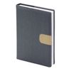 Ежедневник с декоративным элементом в виде застежки. Обложка ежедневника из фактурной искусственной кожи - съемная с декоративной прострочкой по периметру, комбинация двух цветов материала, внутри кармашки для визиток и пластиковая вставка, хлястик под ручку. Возможно тиснение. Блок: недатированный, печать в 2 цвета, цвет бумаги - 100% белизны, 70 г/м2, прямые уголки, 1 широкое шелковое ляссе. Внутренний блок - линейка. Информационный блок содержит: личные данные, карта мира, Российские праздники и памятные даты, аббревиатуры для переписки, разница во времени между Москвой и городами России, разница во времени между Москвой и странами мира, карта России, соответствие размеров, международные единицы мер, пищевая ценность продуктов, расход калорий при физических нагрузках, время распада алкоголя в крови, полезные интернет-ресурсы, планирование задач, дни рождения, важные даты.