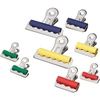 Разноцветные металлические зажимы разных размеров для бумаг. Предназначены для временного скрепления большого количества листов. При скреплении не деформируют бумагу.