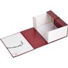Складной архивный короб изготовлен из переплетного картона, снаружи покрыт бумвинилом красного цвета (материал на основе ПВХ). В закрытом виде фиксируется с помощью двух хлопчатобумажных завязок. Внутренние стойки-упоры выполнены из гофрокартона. Позволяет надежно хранить документы как в вертикальном, так и в горизонтальном положении.