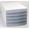 С 5 выдвижными лотками. Для хранения бумаг формата А4. Предохраняет от пыли. Лотки легко выдвигаются. Имеет ограничители движения лотков. Оригинальная игра цвета благодаря открытой задней стенке бокса. Удобные пропорции для письменного стола. Двухцветный: светло-серый/темно-серый. Размер: 387х284х218 мм.