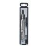Набор чертежных принадлежностей, состоящий из 3-х предметов — циркуль стальной никелированный (125 мм), игольная вставка пластмассовая и пенал с запасным грифелем. Упакованы в черный пластиковый пенал с прозрачной крышкой и подвесом. Предназначен для школьников старших классов и студентов технических учебных заведений. Инструменты имеют никелированную поверхность.