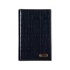 Вертикальная настольная визитница изготовлена из натуральной кожи синего цвета с тиснением под крокодиловую кожу, размер - 115x195 мм. Украшена прострочкой и золотистым металлическим шильдом. Рассчитана на 42 визитки. Каждый лист вмещает три визитки или банковские карты стандартного размера. Прозрачные карманы позволяют читать информацию, не вынимая карточки.