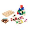 В наборе: 26 элементов для занятия математикой, счетные палочки - 24 штуки, 20 кубиков.