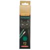 В наборе: 12 чернографитных карандаша. Карандаши с ластиком. Пластиковый зеленый корпус. Диаметр грифеля: 1,85 мм.