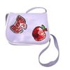 Детская сумочка выполнена в белом цвете и декорирована рисунком бантика и яблока, украшенным пайетками. Размер сумочки не позволит носить в ней крупные предметы, но для косметички и небольших аксессуаров она подойдет как нельзя лучше. Сумка имеет одно отделение, закрывающееся на заклепку. Для ношения на плече предусмотрена длинная лямка.