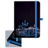 Застежка-резинка, прямой корешок, закругленные углы переплета и внутреннего блока, каптал, ляссе в цвет среза.